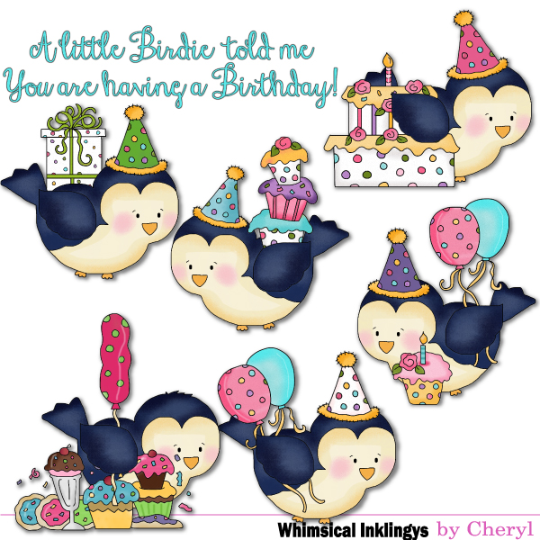 Bird,Birthday,cheryl seslar killian,whimsical inklings,etsy,teachers pay teachers,design bundles,embroidery,clip art,scrap,craft, card,diddybag.com