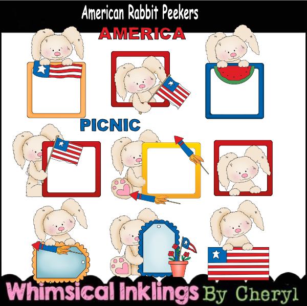 Animal,rabbit,bunny,america,4th,patriotic,usa,peeker,frame,cheryl seslar killian,whimsical inklings,etsy,teachers pay teachers,design bundles,embroidery,clip art,scrap,craft, card,diddybag.com