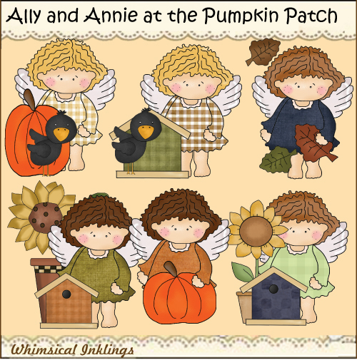 Angel, girl, row, leaves, leaf, fall, sunflower, pumpkin, bird house, girls