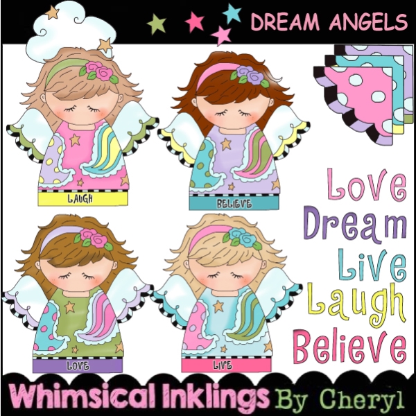 Angel,girl,star,corner,scrap,love,dream,live,laugh,believe,cheryl seslar killian,whimsical inklings