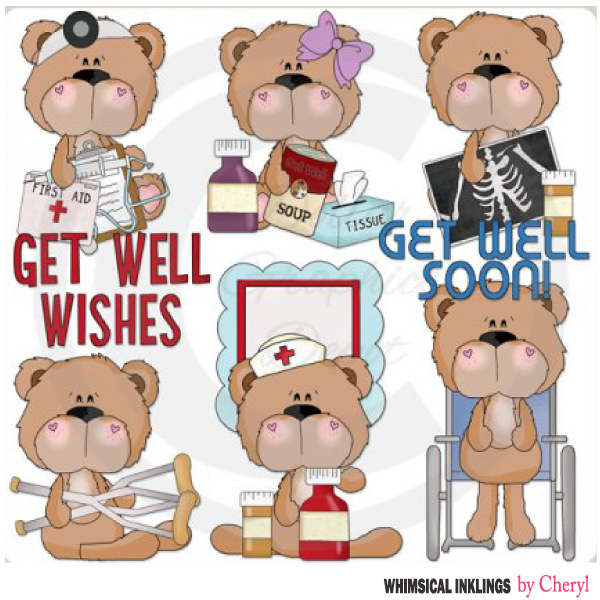 bear,get well,medical,whimsical inklings,cheryl seslar,diddybag.com,clip art