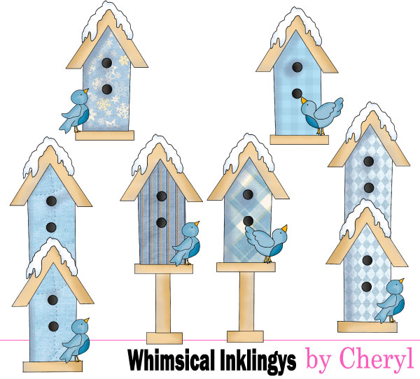 birdhouse,bird,winter,blue,cheryl seslar killian,whimsical inklings,etsy,teachers pay teachers,design bundles,embroidery,clip art,scrap,craft, card,diddybag.com