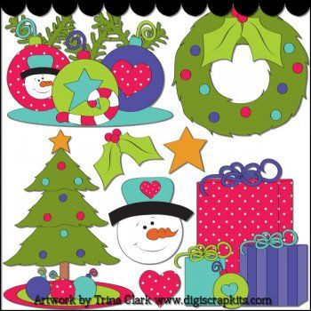 winter,christmas,ornament,pine,star,candy cane,wreath,holly,gift,gift,snowman,clipart,trina,clark,walker,diddybag