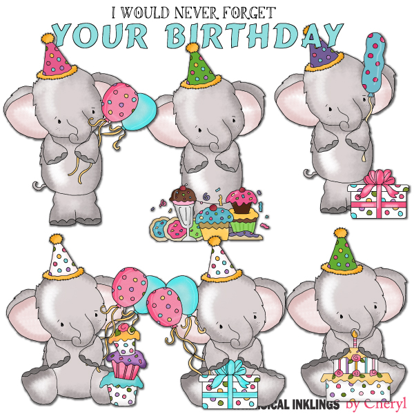birthday,elephant,happy,cupcake,balloon,child,cheryl seslar killian,whimsical inklings,etsy,teachers pay teachers,design bundles,embroidery,clip art,scrap,craft, card,diddybag.com