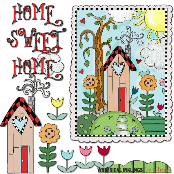 Cottages,Country Things,Flowers,Garden,Greeting Cards,House,Projects,Season,Springtime,Summer,Villagecheryl seslar killian,whimsical inklings,etsy,teachers pay teachers,design bundles,embroidery,clip art,scrap,craft, card,diddybag.com