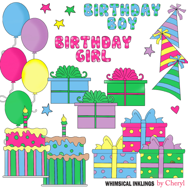 Birthday,balloon,gift,candle,hat,star,cheryl seslar killian,whimsical inklings,etsy,teachers pay teachers,design bundles,embroidery,clip art,scrap,craft, card,diddybag.com
