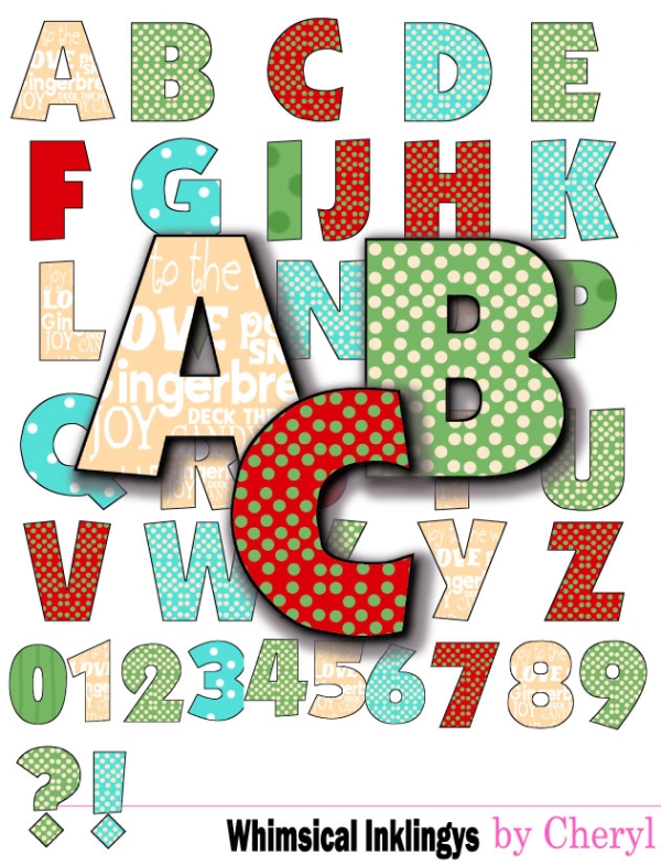 Abcs,Alphabets,Christmas,Occ,Winter,cheryl seslar killian,whimsical inklings,etsy,teachers pay teachers,design bundles,embroidery,clip art,scrap,craft, card,diddybag.com