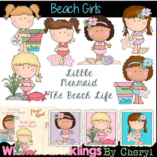 girl,beach,shell,sea,crab,stamp,postcard,cheryl seslar killian,whimsical inklings,etsy,teachers pay teachers,embroidery,clip art,scrap,craft, card,diddybag.com