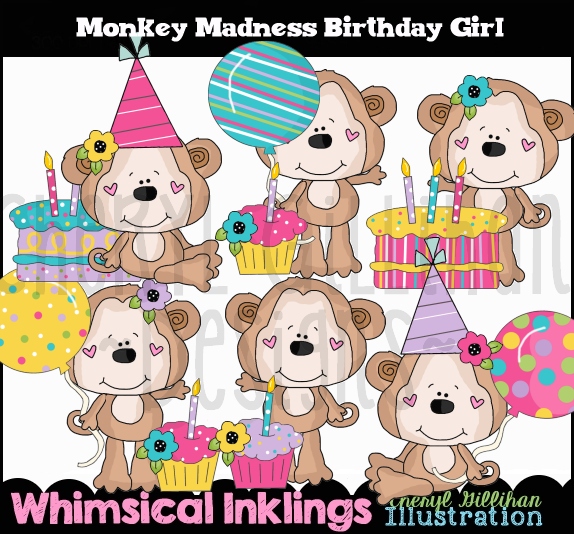 birthday, party, happy, monkey, cake, balloon, cupcake, cake