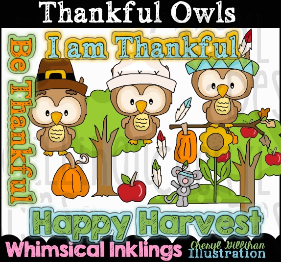 fall,autumn,thanksgiving,owl,pilgrim,Cheryl Seslar killian, whimsical inklings,etsy,teachers pay teachers,design bundles,embroidery,clip art,scrap,craft, card,diddybag.com