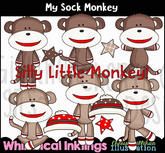 monkey,sock,sock monkey,cheryl seslar killian,whimsical inklings,etsy,teachers pay teachers,design bundles,embroidery,clip art,scrap,craft, card,diddybag.com