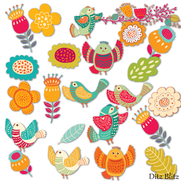 bird, flower, folk, leaf, modern, bird,flower,blossom,leaf,Ditz Blitz, clip art, scrap,folkart,diddybag