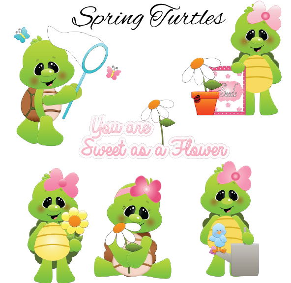 turtle,spring,flower,garden,bird,kristi w,clipart,clip art,scrap,card,embroider,digitize,diddybag