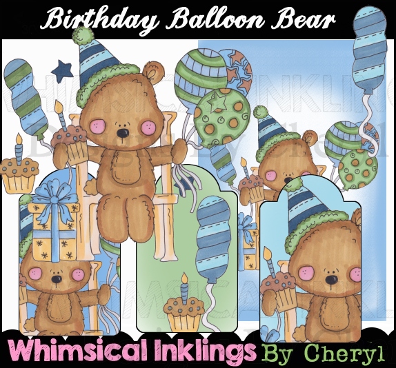 bear,birthday,balloon,cheryl seslar killian,whimsical inklings,embroidery,clip art,scrap,craft, card,diddybag.com