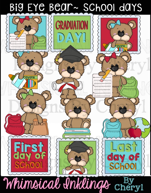 bear,school,cheryl seslar killian,whimsical inklings,etsy,teachers pay teachers,design bundles,embroidery,clip art,scrap,craft, card,diddybag.com