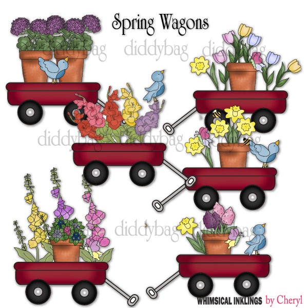 wagon,spring,flower,cheryl killian,whimsical inklings,etsy,teachers pay teachers,design bundles,embroidery,clip art,scrap,craft, card,diddybag.com