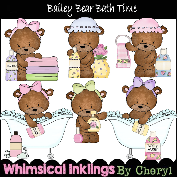 bath time,bath,bear,baily,tub,cheryl seslar killian,whimsical inklings,embroidery,clip art,scrap,craft, card