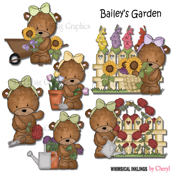bailey,bear,flower,garden,cheryl seslar killian,whimsical inklings,embroidery,clip art,scrap,craft, card