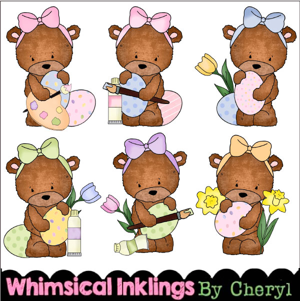 Animals,Bears,Easter,Occ,Spring,cheryl seslar killian,whimsical inklings,embroidery,clip art,scrap,craft, card