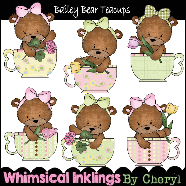 bailey,bear,tea,cup,teacup,party,cheryl seslar killian,whimsical inklings,embroidery,clip art,scrap,craft, card