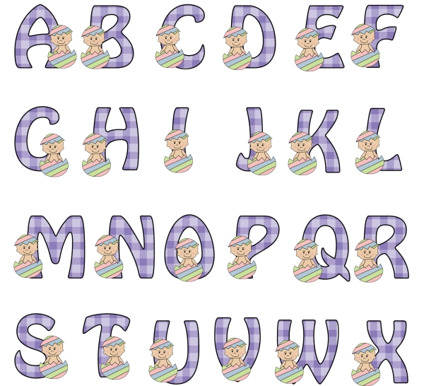 Abcs,Alphabets,Baby,Easter,Occ,Peo,Spring,cheryl seslar killian,whimsical inklings,embroidery,clip art,scrap,craft, card,diddybag.com