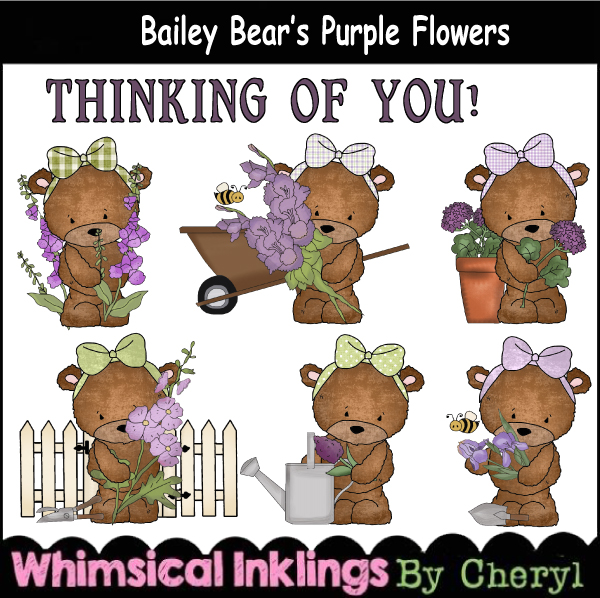 Animals,Bears,Flowers,Garden,purple,pot,water,wheel,cherylkillian,diddybag,etsy,teachers pay teachers,design bundles,embroidery,clip art,scrap,craft, card,diddybag.com