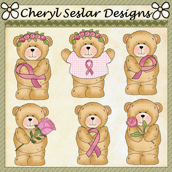 Bears,Breast Cancer Awareness,cheryl seslar killian,whimsical inklings,embroidery,clip art,scrap,craft, card,diddybag.com