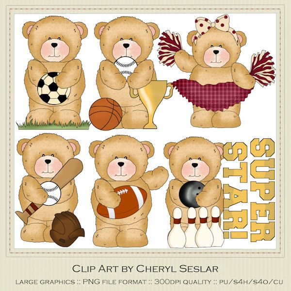 bear,sport,soccer,basketball,cheer,baseball,football,bowl,clipart,clip art,craft,scrap,paper,embroidery,cheryl,seslar,killian