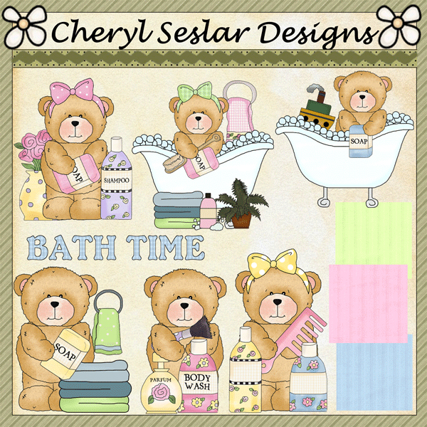 Baby,Bath,,Bears,cheryl,seslar,killian,clipart,clip art,scrap,paper,card,embroidery