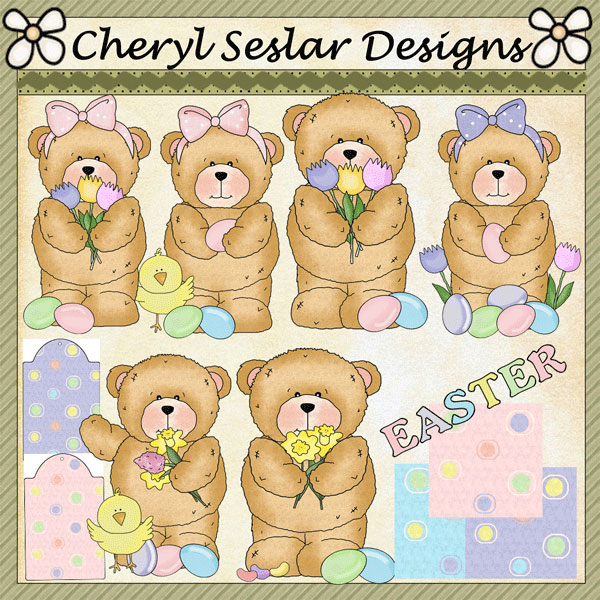 bear,easter,flowers,girl,boy,cheryl killian,whimsical inklings,etsy,teachers pay teachers,design bundles,embroidery,clip art,scrap,craft, card,diddybag.com