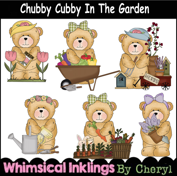 Bears,Easter,Flowers,Garden,Occ,Season,Spring,Springtime,chubby,cheryl,cheryl seslar killian,whimsical inklings,embroidery,clip art,scrap,craft, card,diddybag.com