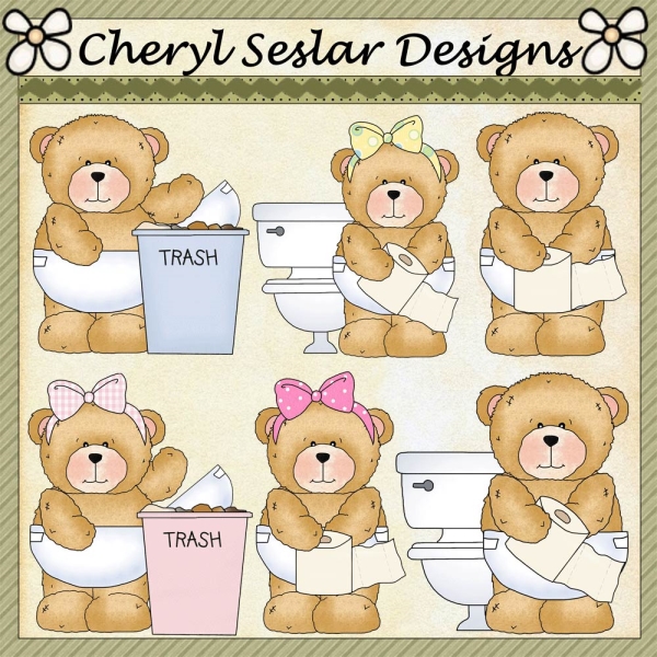 Baby,Bears,potty,chubby,cheryl,seslar,cheryl seslar killian,whimsical inklings,embroidery,clip art,scrap,craft, card,diddybag.com