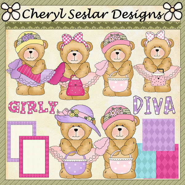 bear,diva,boutique,shop,cheryl seslar killian,whimsical inklings,embroidery,clip art,scrap,craft, card,diddybag.com