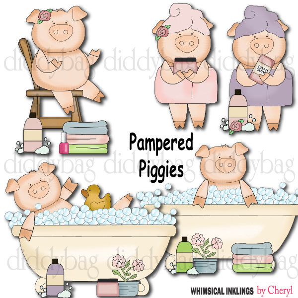 pig,piggy,bath,spa,digitize,embroidery,clipart,clip art,card,craft,print,scrap,diddybag.com