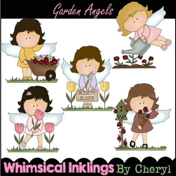 girl,angel,flower,cart,garden,water,can,clipart,clip art,cheryl,seslar,killian,embroidery,scrap,diddybag