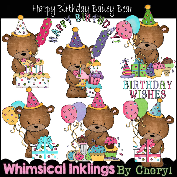 bear,birthday,party,cake,balloon,cupcake,cheryl seslar killian,whimsical inklings,clip art,embroidery,scrap,card,craft