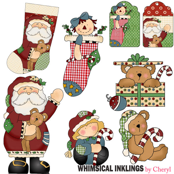 christmas,santa,stocking,bear,tag,cheryl seslar killian,whimsical inklings,etsy,teachers pay teachers,design bundles,embroidery,clip art,scrap,craft, card,diddybag.com