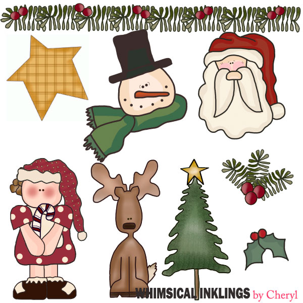 christmas,prim,holiday,winter,cheryl seslar killian,whimsical inklings,etsy,teachers pay teachers,design bundles,embroidery,clip art,scrap,craft, card,diddybag.com