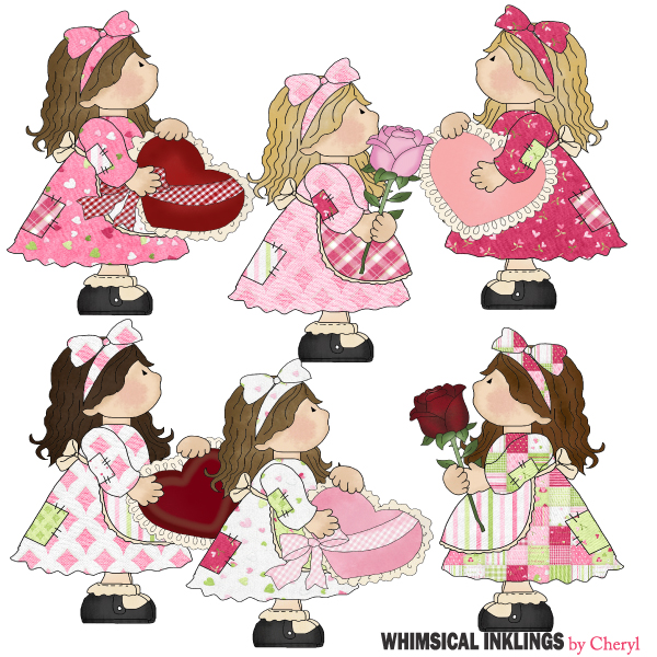 Girls,Love,Occ,Peo,Valentine,cheryl seslar killian,whimsical inklings,etsy,teachers pay teachers,design bundles,embroidery,clip art,scrap,craft, card,diddybag.com