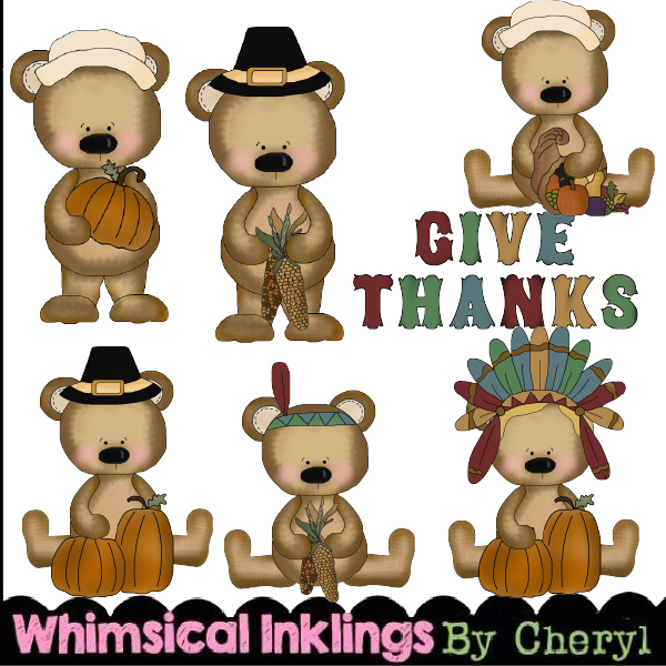 Bears,Fall,Occ,Thanksgiving,cheryl seslar killian,whimsical inklings,etsy,teachers pay teachers,design bundles,embroidery,clip art,scrap,craft, card,diddybag.com