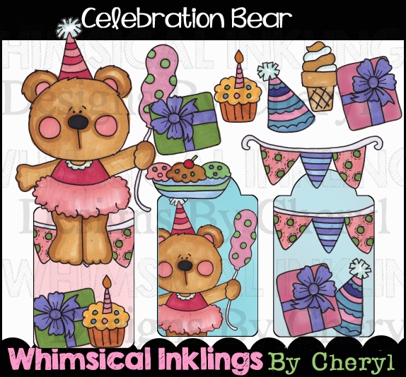 Bears,Birthday,cheryl seslar killian,whimsical inklings,embroidery,clip art,scrap,craft, card,diddybag.com