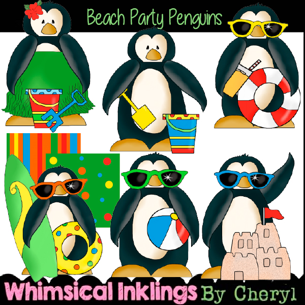 Beach,Penguins,Sea,Season,Summer,Tropical,cheryl seslar killian,whimsical inklings,etsy,teachers pay teachers,design bundles,embroidery,clip art,scrap,craft, card,diddybag.com