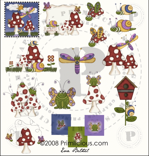 Bugs,Butterfly,Dragonfly,mushroom,ladybug,