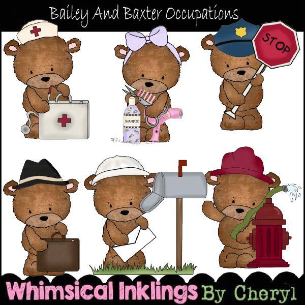 bear,occupation,police,fire,cowboy,doctor,nurse,sheryl seslar killian,whimsical inklings,diddybag,clip art,scrap,embroisery