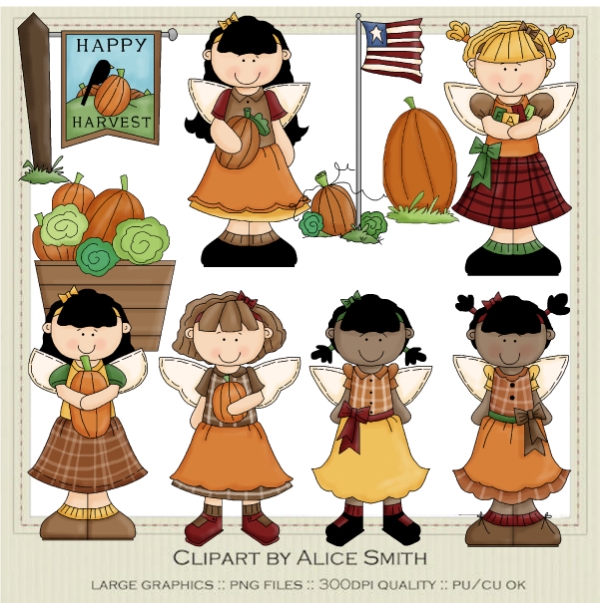 fall,girl,angel,flag,pumpkin,harvest,alice,smith,clipart,clip art,scrap,embroidery,diddybag