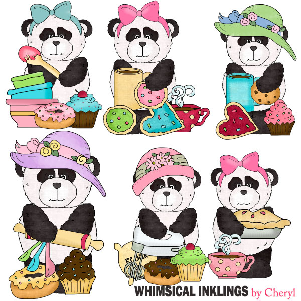 Panda,bear,food,bake,chubby,clipart,clip art,cheryl,seslar,killian,scrap,embroidery,paper,craft,card