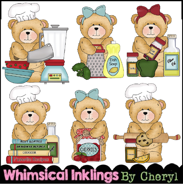 Bears,Chef,Cook,Cooking,Food,Kitchen,Utensils,cheryl seslar killian,whimsical inklings,embroidery,clip art,scrap,craft, card,diddybag.com