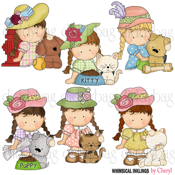 Cats,Dog,Girls,Kittens,Peo,Puppies,cheryl seslar killian,whimsical inklings,etsy,teachers pay teachers,design bundles,embroidery,clip art,scrap,craft, card,diddybag.com