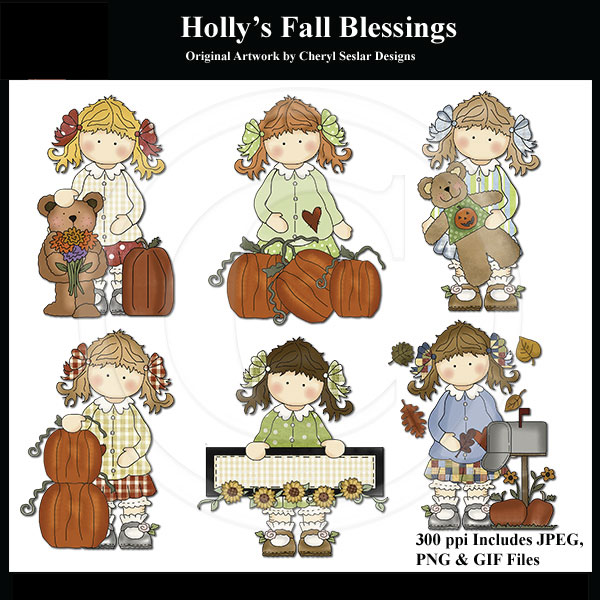 Fall,Girls,Halloween,Occ,Peo,Thanksgiving,Holli,cheryl seslar killian,whimsical inklings,etsy,teachers pay teachers,design bundles,embroidery,clip art,scrap,craft, card,diddybag.com
