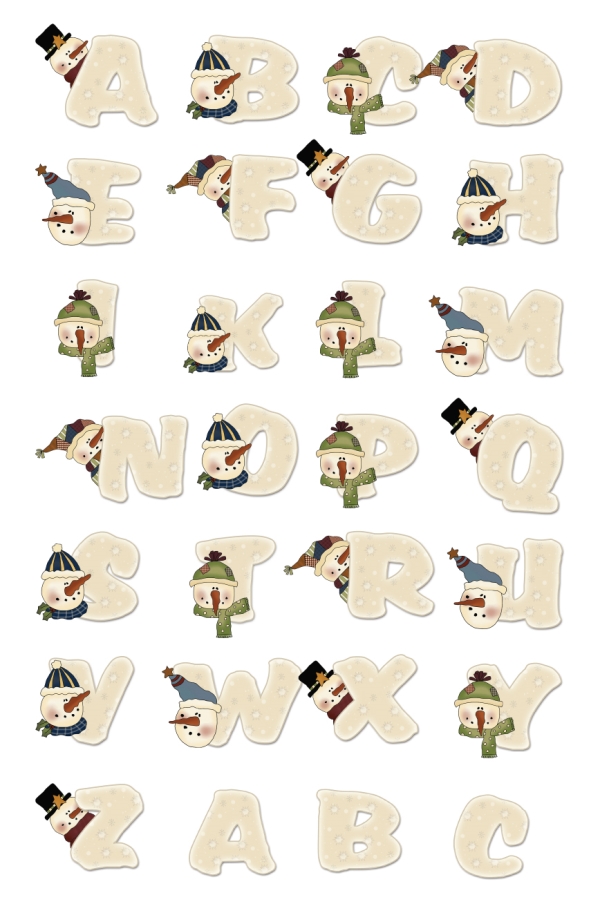 Abcs,Alphabets, snowman, boggin, hat